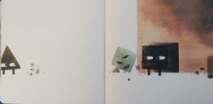 Klassen’s restrained earthy palette and minimalist scenes (those eloquent eyes again), are in perfect harmony with Barnett’s even sparer, deadpan text allowing readers to step into the narrative landscape and fill for themselves, the host of gaps left by the book’s genius creators.