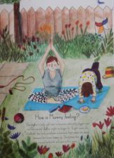 Opposite, the recto relates how the mother is feeling, with a full page illustration by Lizzy Stewart …