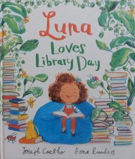 Fiona Lumbers too has done a terrific job. Right from the cover picture, you’re drawn into Luna’s world and Luna herself is a delight. So too are the other characters who frequent the library, not least the little girl who pops into several spreads – peering round bookshelves or sprawling slantwise across an armchair.