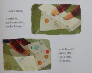 Mouse and Bear share a house in the big, dark woods, so when Mouse announces that he’s off to find the moon, accompanied only by a the Moon Map he’s in the process of making, Bear offers to accompany him.