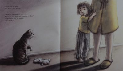 Putting on a show of bravery she gets up to search for her toy but there comes a sound from behind her. She turns and sees …
