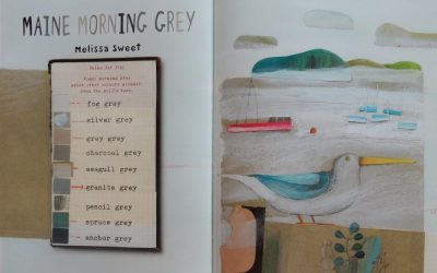Some artists such as Philip C. Stead, Yuyi Morales and Melissa Sweet use poetry. Melissa Sweet’s Maine Morning Grey comes in many shades: