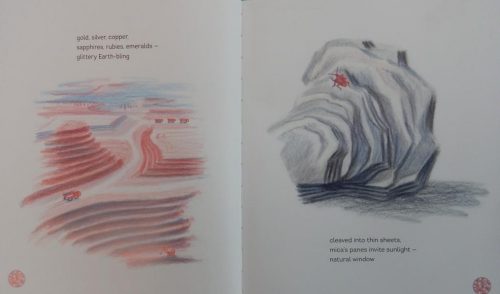 We then move inwards ‘fragile outer crust. / shell around mantle and core – / Earth: a hard-boiled egg.’ How cleverly and succinctly Walker introduces scientific vocabulary into her poetry and you’d find it hard to get more playful than her description of minerals and metals as ‘glittery Earth-bling’;
