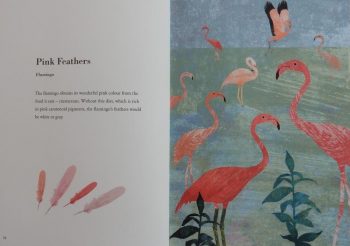 Each double spread is devoted to a particular aspect including feather development, structure, types of feather, colour – did you know flamingos are pink thanks to the carotenoid pigment in the crustacea they eat?