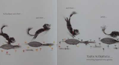 Recognising the similarities with her own story, Smallpaw is intrigued and allows herself be lured outside, bounding right up close to the foxy gentleman who, as foxes do, has his eye on the main chance.