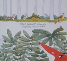 Since making friends in Everybunny Dance, ’Fox and bunnies like to play, / all together, every day.’ And their chosen game for this particular day is hide-and-seek.