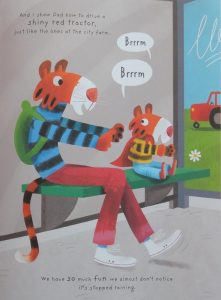 With a wonderful twist in its tale, Sebastien Braun’s story is an absolute winner. Sadly my copy arrived too late for Father’s Day but this is a perfect share on any day: a Dad who’s willing to pitch in and enjoy life no matter what; a book enthusiast offspring equally willing to look on the bright side – two colourful characters superbly portrayed by Seb Braun whose books just keep on getting better.