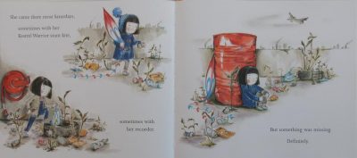 What happens thereafter will make your heart sing: I won’t reveal what that is, but suffice it to say it involves a flourishing of flowers aplenty, and friendship, a city soundscape with beautiful music, kite flying and thanks to Fiona Lumbers’ glorious floral scenes, the most gorgeous colours you can imagine.