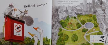 Yes, this fine friendship story is wonderfully funny and stunningly illustrated in lush colours, but like all good stories it raises questions for readers to ponder as well as an important unspoken environmental message. (Love the Tidy rubbish bin.)