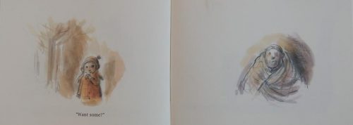 Claude Dubois’ soft watercolour pencil sketches with their loose imagery underline the mood and the chill of this drifting tale of our times. Entirely unsentimental yet enormously heart-warming, this is a book that needs to be shared and discussed everywhere, not least by policy makers in government who have, dare I say, been instrumental in creating the circumstances like those of this homeless man.