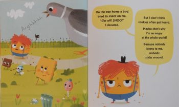 If you can believe it though, the day has to throw in an even bigger disaster. Angry Cookie heads to the ice cream parlour, his heart set on his favourite vanilla sundae topped with all manner of yummy sprinkles and served in a tall glass. But – I’m sure you’ve already guessed – they’ve run out. Can you blame the poor thing for his anger?