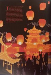 On this spread we learn that the festival was long ago a celebration of a successful harvest of wheat and rice, when food was offered to the moon; this has been celebrated since the Shang dynasty around 1600-1046BCE.