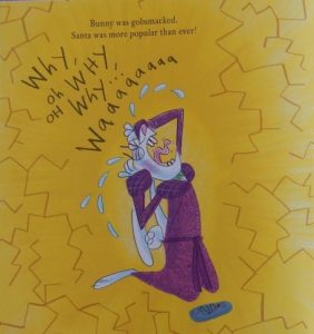 How on earth have the Easter Bunny and Santa managed to get themselves into the same book was my immediate reaction to this one especially as neither of them seem particularly pleased to see one another.