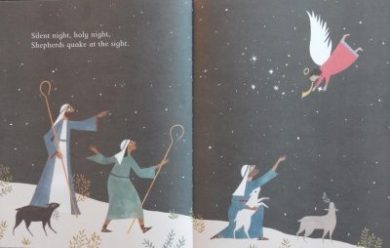 Her beautiful, richly patterned illustrations stand out against an inky, star speckled night sky telling the nativity story using just the English translation of Joseph Mohr’s words.