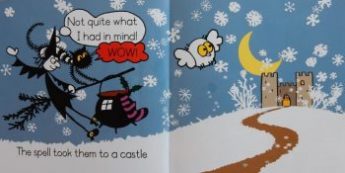 Instead of hanging up their stockings in the comfort of their own home Meg, Mog and Owl do so in the very spooky room where they spend the night.
