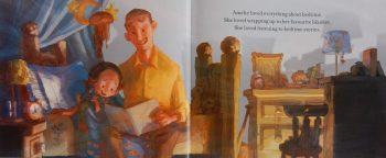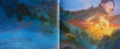 At this point in the story, (with a nod to Sendak’s Where the Wild Things Are) we see a forest growing in her bedroom.
