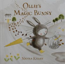 Suddenly a breeze blows past and in its wake a cloud of golden blossom. When a petal lands on Bunny’s nose it somehow magically transforms the toy into a real rabbit. He leaps from the basket and he dashes off in pursuit of other rabbits with Ollie in hot pursuit.