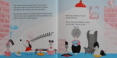 Off they go to the library and soon Keith is happily listening to Miss Hush’s story about an angry dragon. Until that is the librarian asks Claude to give a dragon impression.