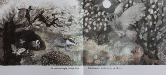 Daddy Badger’s response is to take his little one up and out to the forest the very next night.
