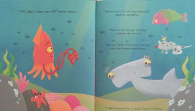 Wendy’s telling is great fun but at the same time reminds us of the importance of self-worth and self-belief. Duncan’s terrific undersea scenes are splendidly expressive and comical, and I love his marine colour palette.