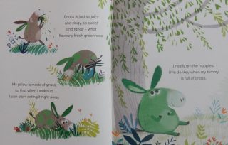 before Little Donkey heads home; but his Mum isn’t fooled at all. “It’s really time to try and eat some new food,” she urges.