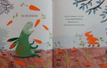 Her son’s response is to sample several different coloured items – oranges ‘too juicy’; watermelon- too seedy; broccoli too green – really? Apples are just too yucky; grapes are instantly ejected, but what about crunchy carrots? Now they are …