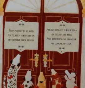 In their haste however, they each grab the nearest reachable bottom and dash out. That’s why when they meet in the street dogs sniff one another’s bums – in the hope of finding their own again.