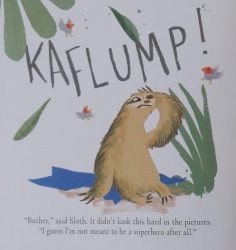 Jungle resident, Sloth is far from fast and unable to fly; but when he comes upon a picture book story of a superhero he’s totally enthralled and it gets him thinking.
