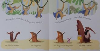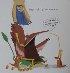 Is that the end of his superhero aspirations? Not quite: when he learns of the potential starvation of the other jungle animals and hears from Bear about the need to break into Anteater’s well-guarded stronghold, it sets him thinking again and makes him extremely angry.