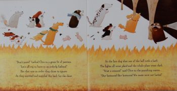 Catastrophe! Fire breaks out, engulfing much of the furniture and furnishings in flames: the dogs flee for their lives.