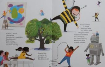 But more important is the assurance to the small child that ‘your future’s bright’ (not so bright with BREXIT looming, I fear) and that she and others like her ‘ … can choose whate’er they want to be / and be that thing, quite splendidly …’ Not of course, without hard work and application though; and the sky’s the limit – literally. I love the fact that pushing boundaries and rule breaking are acknowledged as lesson one draws to a close.