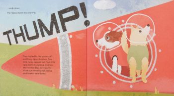 We’ve already had picture books about Laika (notably Owen Davey’s Laika the Astronaut) but now this, author Vix Southgate’s debut, celebrates two canine heroes from Moscow, Belka and Strelka, the first living creatures to actually survive being hurtled into space to orbit several times before being brought safely back to earth.