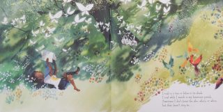 The book concludes with an idyllic book club setting – in a tree where many children have gathered to enjoy their chosen books.