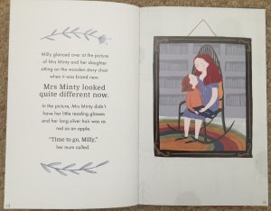 Mrs Minty is the owner of the one here, a place young Milly loved to visit especially for the weekly story time sessions when she’d sit transfixed on one of the cushions on the rainbow carpet listening to Mrs Minty read from a book, often in response to Milly’s ‘one with … in’. Times when Milly has saved sufficient pocket money to buy a book of her own were especially exciting.