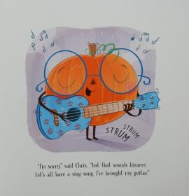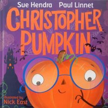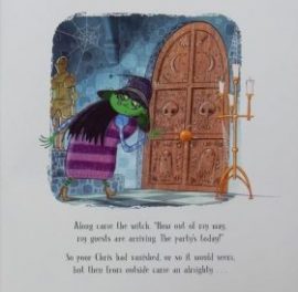 This witch decides to spell a heap of pumpkins into life, name them – Gnarly, Grizzly, Grunty, Roar, Snaggletooth, Stink Face and err – well she never gets to give a name to the last one for he cheerily informs her that he’s called Christopher Pumpkin and invites his fellow pumpkins to a group hug.