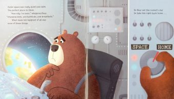 But worse is to come. That Sneaky Beak leaves a leaflet about a very special kind of bathtub. Bear’s determination to resist lasts only until bathtime when he’s on the phone again and guess who he’s calling …
