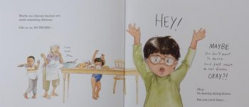How Do You Dance? That question is posed on the title page followed by some responsive ‘like this’ moves, while there’s a little boy shown opposite sitting reading.