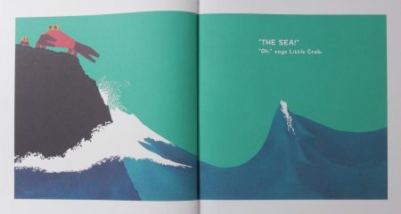 Little Crab and Big Crab live together in a small rockpool and today’s the day Little Crab takes his very first swim in the big ocean. They set off together making their way over the rocks, tip-clawing across shallow pools and squelching through slimy seaweed, Little Crab full of eager anticipation until …
