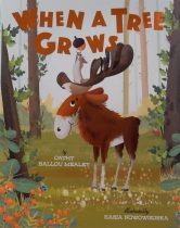 ‘When a tree grows … two things could happen. It becomes a scratching post for Moose’s itchy antlers and the tree sways gently side to side.’ Or … he pushes too hard and crash!-boom! Down comes the tree onto a cave waking up a bear. Bear too can do one of two things … and so it goes on with the possibility of an ordinary or an extraordinary happening.