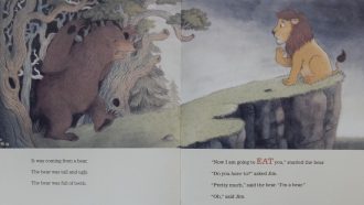 Finally he can run no further. As he stands contemplating his conflicting emotions he hears a growl that isn’t emanating from his stomach. There before him stands a larger, even more ferocious looking creature …