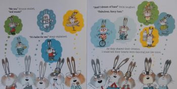 Amid the cries of consternation, there’s one little bunny, Betsy, who loves his daring to be different and it isn’t long before Bernard isn’t the only risk taker on the dance floor.
