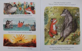 but then she sees something amazing in the darkness and she recalls Wolf’s words on their final day together. Back comes a stream of happy memories and as Fox replaces the star blanket, a feeling of peace takes its place, and with it an understanding of her friend’s talk of starlight.