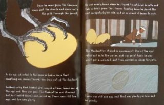 One day the Faery leaves a gift of three golden eggs in a nest for the Woodcutter to find. The gentle soul can barely believe what is before his eyes.