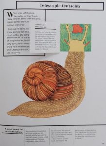 There are flaps that can be lifted to reveal inside views of such things as a snail’s two ‘noses’ that amazingly allow a snail to detect the smell of a lettuce from a distance of 100 metres.