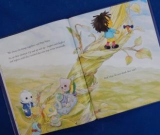 Once at Pepi Nana’s Toy House he wakes her friends with his music: for the uninitiated they are Mr Onion, Colly Wobble, Sleepy Dibillo, Little Nana, Lambkin and Lily Plant. They create tissue paper flowers from the resources in the curiosity box and one ends up looking like a seed that becomes the inspiration for the next Storyland tale wherein ‘Tiddle toddle’ Pepi Nana’s magical seed grows into a large beanstalk which everybody climbs