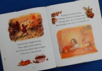 the enchanting visual presentation of All Shapes and Sizes, again with accompanying rhymes; or cacophonous Sounds alongside some gentler ones, each section offers sheer pleasure (and some gentle learning) at every page turn.
