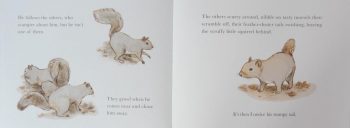 It’s the beginning of a friendship that develops between child and squirrel – a squirrel that is, like the girl, a little different from others.