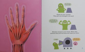 With simple, bright, lively illustrations, this, zany mix of fact and fiction is enormously engaging: little humans will love the idea of helping the little aliens reach their destination, and in so doing learning some basic human biology – anatomy and physiology – as presented by the clever human team Idan Ben-Barak (author/scientist) and illustrator Julian Frost.