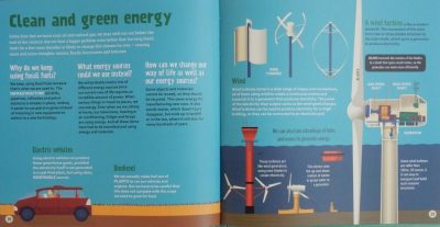 After a spread on the sun’s energy, the book looks at what energy actually is including the difference between potential and kinetic energy.