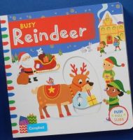 As an adult reads the rhyming couplets, little fingers can manipulate the sliders to activate Santa’s reindeer Ruby, then watch the sleigh take flight over a snowy landscape, help Santa down the chimney and finally, open the stable door for him to thank and bid goodnight to his number one helper. All of this is illustrated in Samantha Meredith’s bright, jolly scenes of a busy Christmas delivery round.